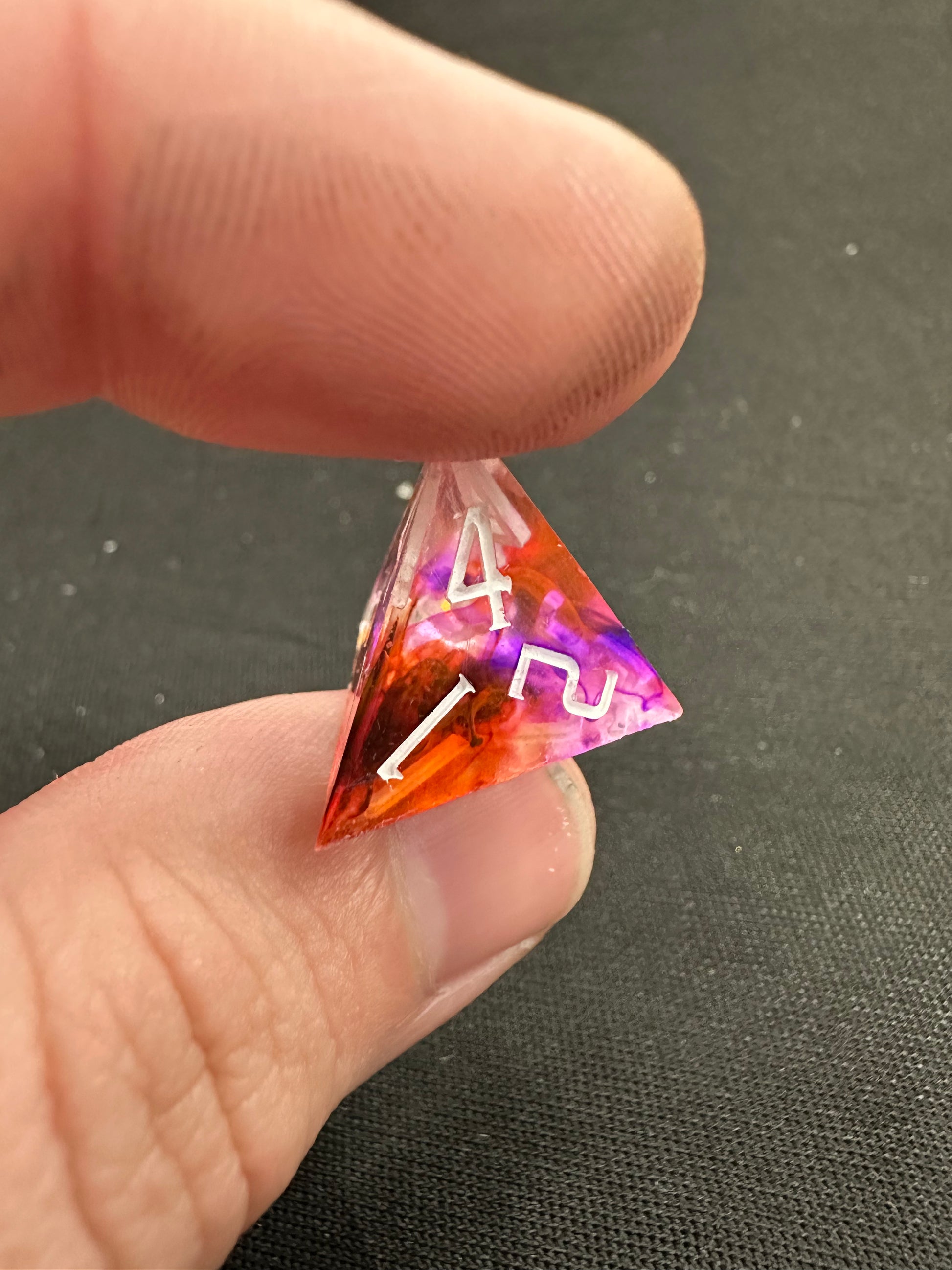 Channel the beauty of nature’s duality with the Ametrine Dice Set. Inspired by the rare gemstone that unites the fiery glow of citrine with the mystical depth of amethyst, these dice shimmer with vibrant orange, regal purple, and crystal-clear transparency. Each roll feels like turning a gemstone in the light, revealing a balance of warmth and wisdom.